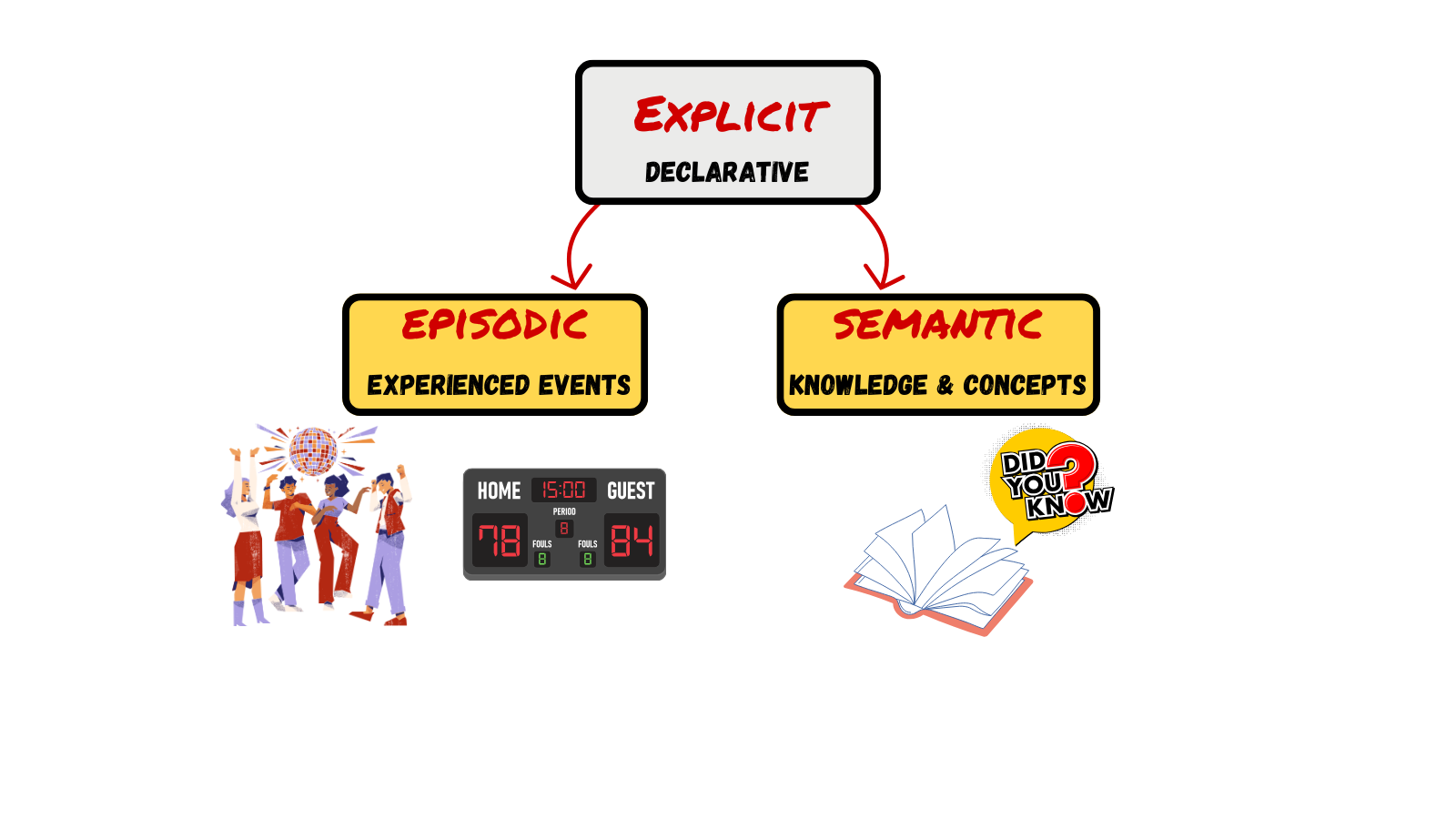 Explicit memory memories of facts and events we can consciously remember and recall/declare