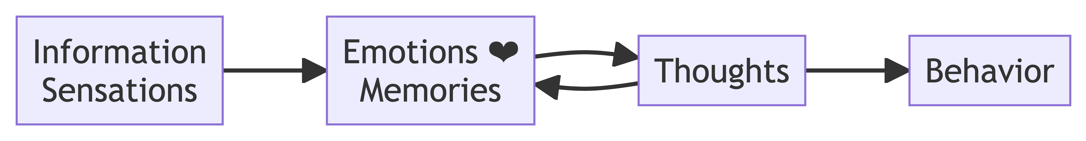 Sensations and information are received by our brains, filtered through emotions and memories, and processed to become thoughts.