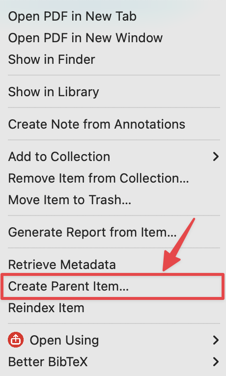 [Your name] APA Walk-Throughcollection in Zotero.The should appear in the middle panel. But this time, Zotero did not create a parent item for you. This means we have to create one before we can manually add in any metadata.