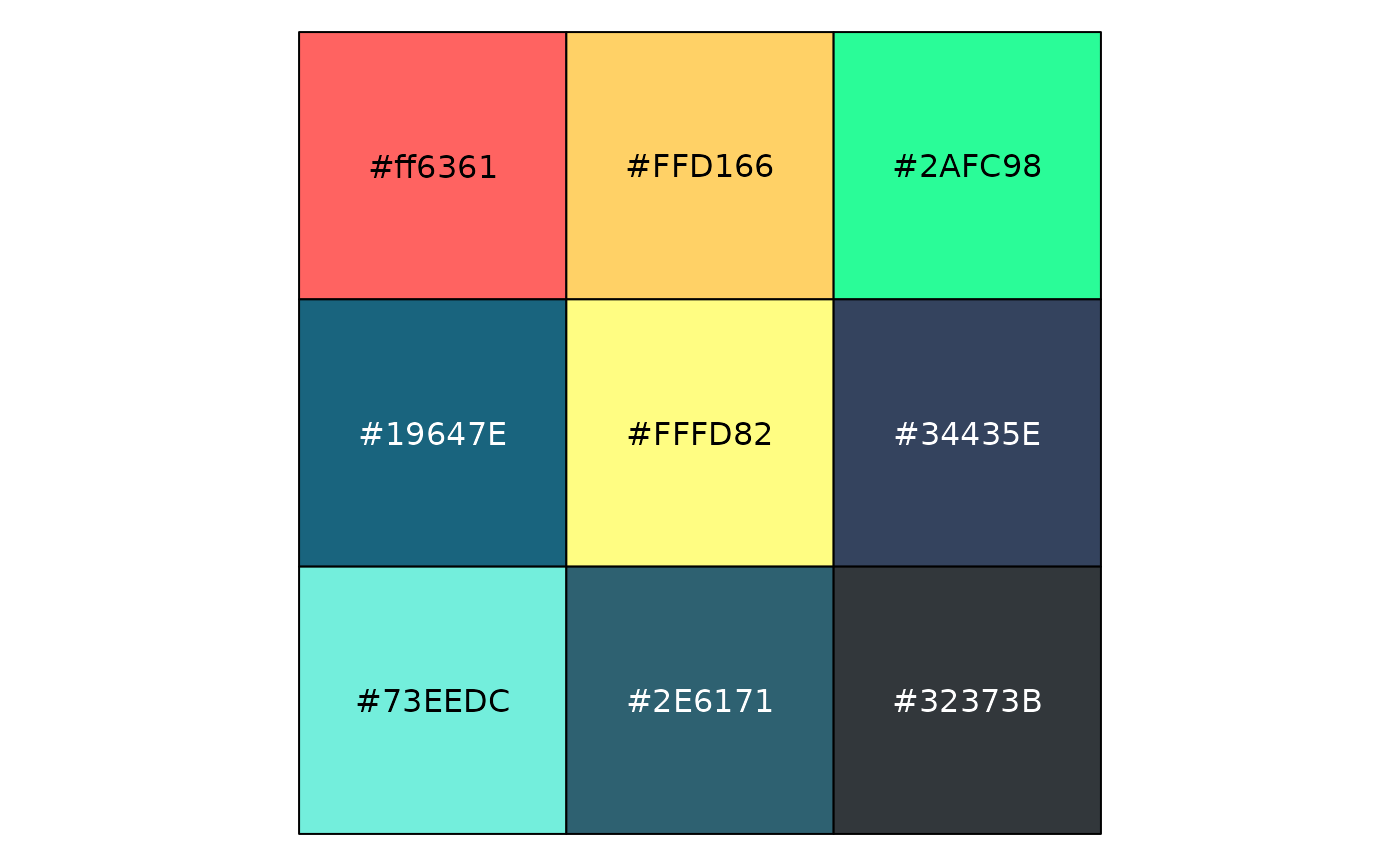 library(scales) scales::show_col(emw_pal()(9))