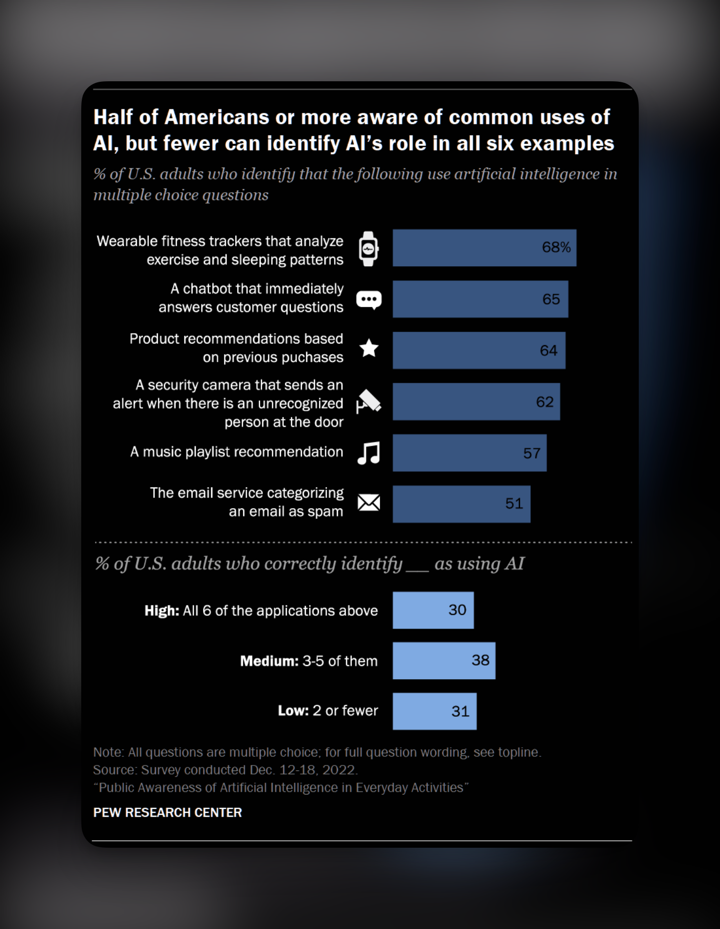 https://www.pewresearch.org/science/2023/02/15/public-awareness-of-artificial-intelligence-in-everyday-activities/.