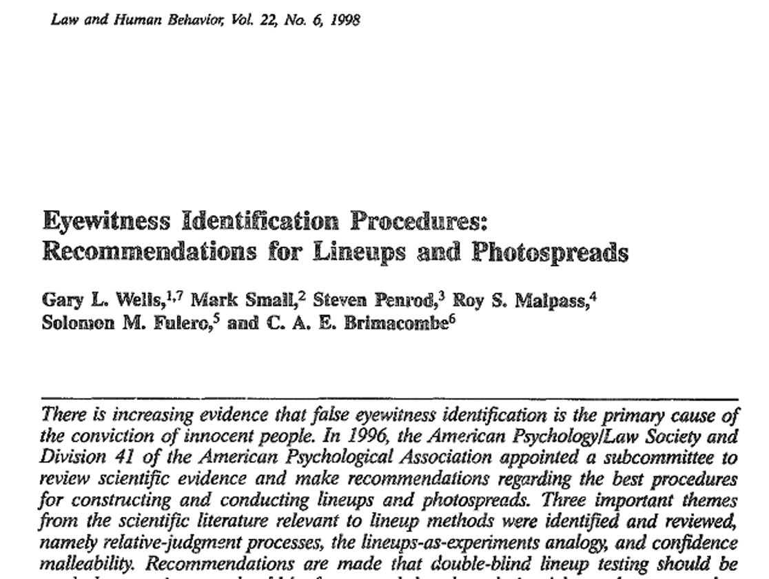 Wells et al. (1998) Eyewitness identification procedures: Recommendations for lineups and photospreads |